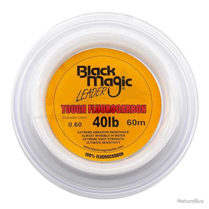 100% Fluorocarbone. Excellente résistance aux noeuds. Résistance supérieure à l’abrasion.