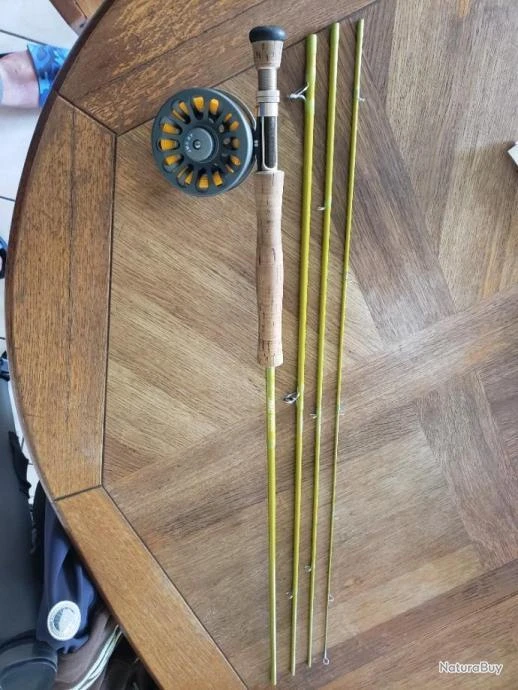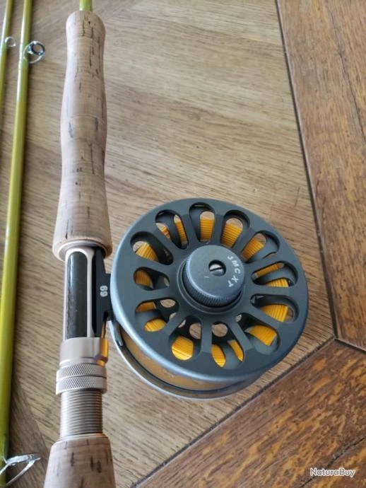 Canne a mouche JMC Expression 10″ pour soie 7 a 9 en 4 partie avec étui rigide moulinet monté JMC XT avec sa boîte . très peu servit