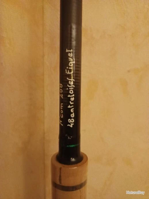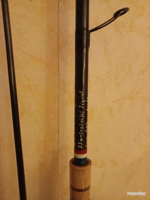 Cannes fil intérieur, montage artisanal entretoises Fiquet retouchées et placées judicieusement pour une glisse optimum , 3 anneaux FUJI Alconite,poignée liège du Portugal 1er choix , porte moulinet mobile à vis type garbo/daiwa, talon démontable, entrée et sortie de fil céramique Fiquet ,